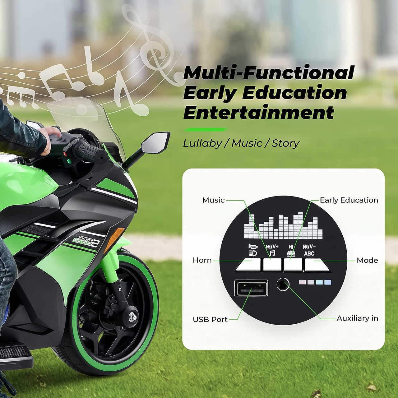 Wheel Power bike with Realistic & Attractive look; Easy to Control  On/Off button start with ignition which makes a real sound comes with Music System